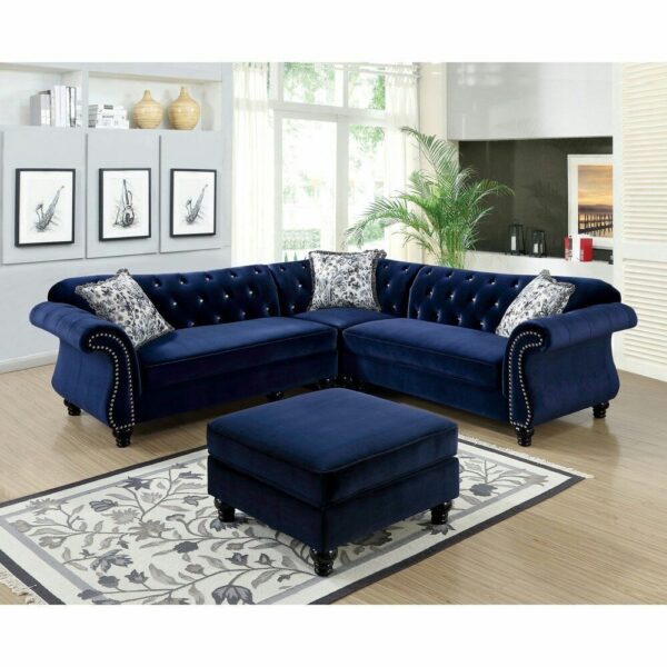 Chesterfield L Shaped Sofa- Blue Valvet WF-115