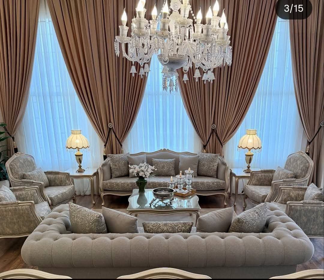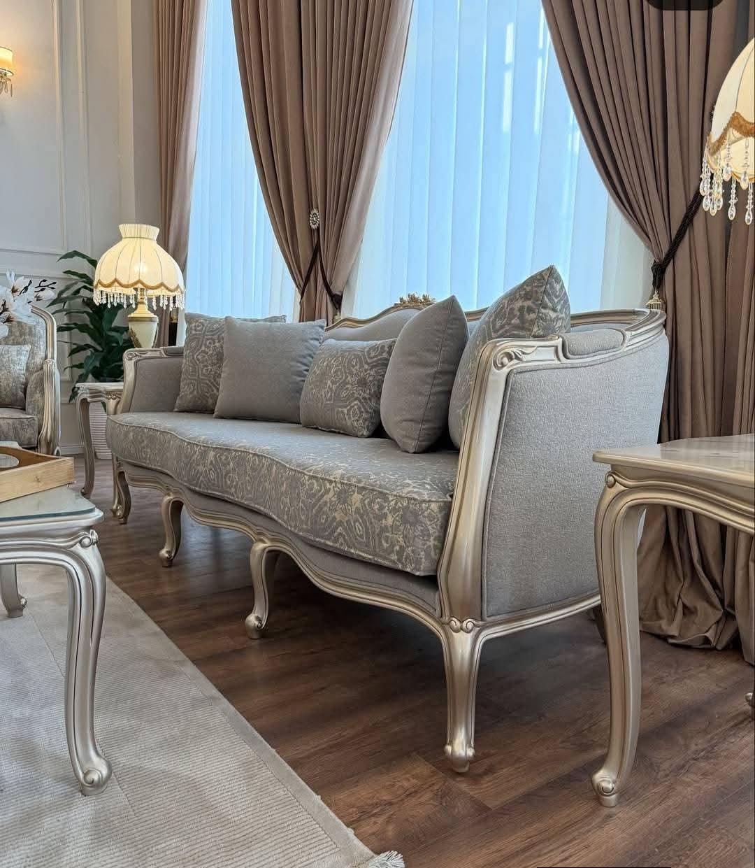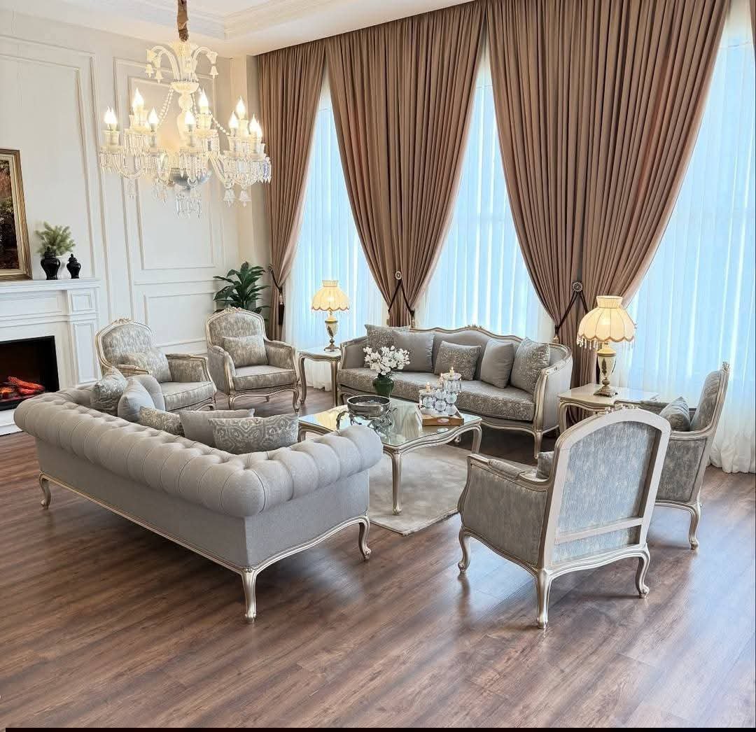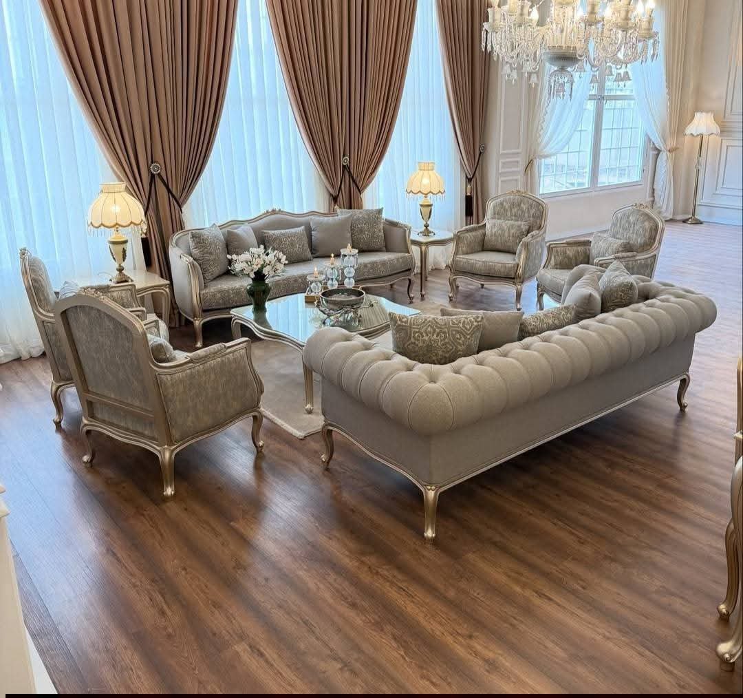 Indulge in timeless luxury with our _Elegant Oasis_ sofa set, the perfect centerpiece for a sophisticated living room. Crafted from solid wood and upholstered in high‑density Molty foam with imported fabric, each piece combines classic elegance with modern comfort. The sleek, tufted design and elegant gold accents echo the grandeur shown in the photo, while the neutral beige tones blend effortlessly with any décor.