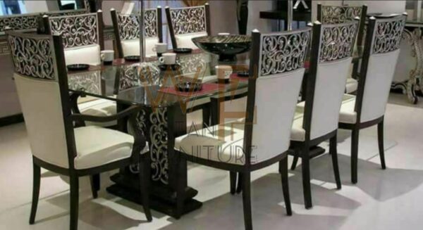 Beautiful Dining Set Hand Craved & Engraved Glass Top (8 Persons)